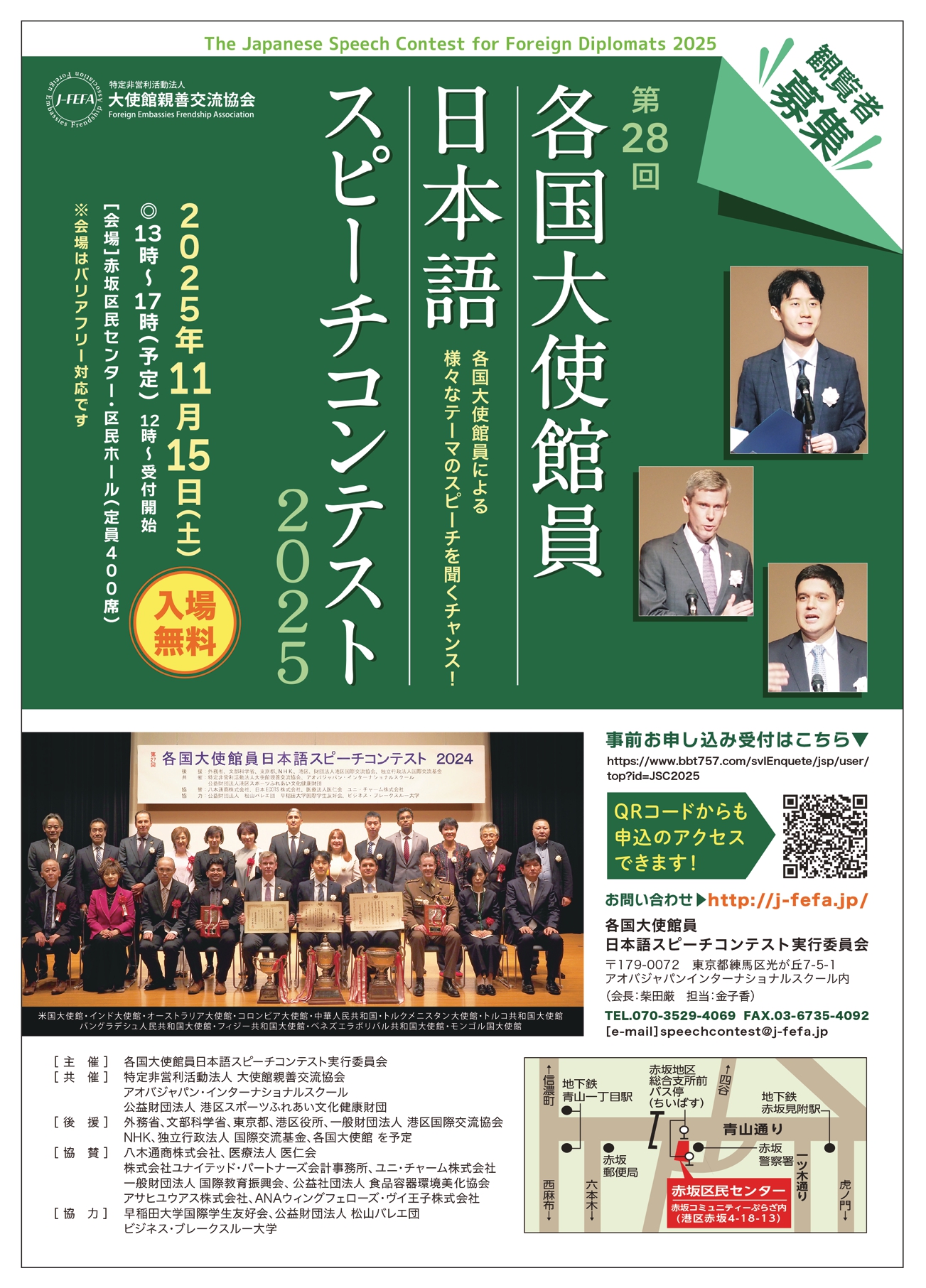 【開催終了第28回各国大使館員日本語スピーチコンテスト2025 11/15 (土) 13:00】