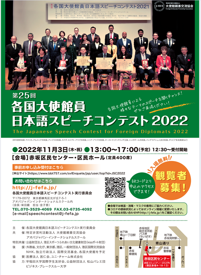 【開催終了第28回各国大使館員日本語スピーチコンテスト2025 11/15 (土) 13:00】