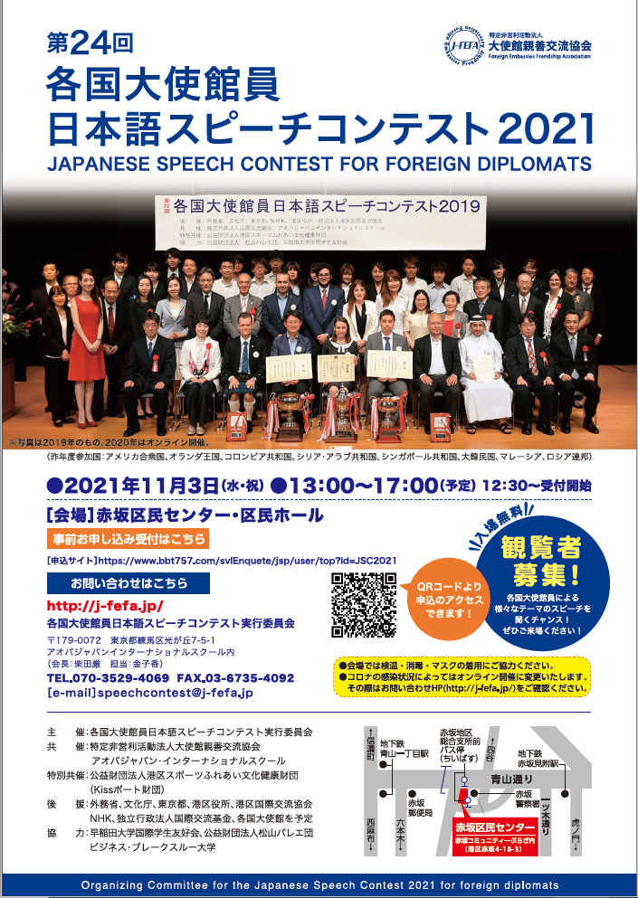 【第24回各国大使館員日本語スピーチコンテスト2021開催のお知らせ】